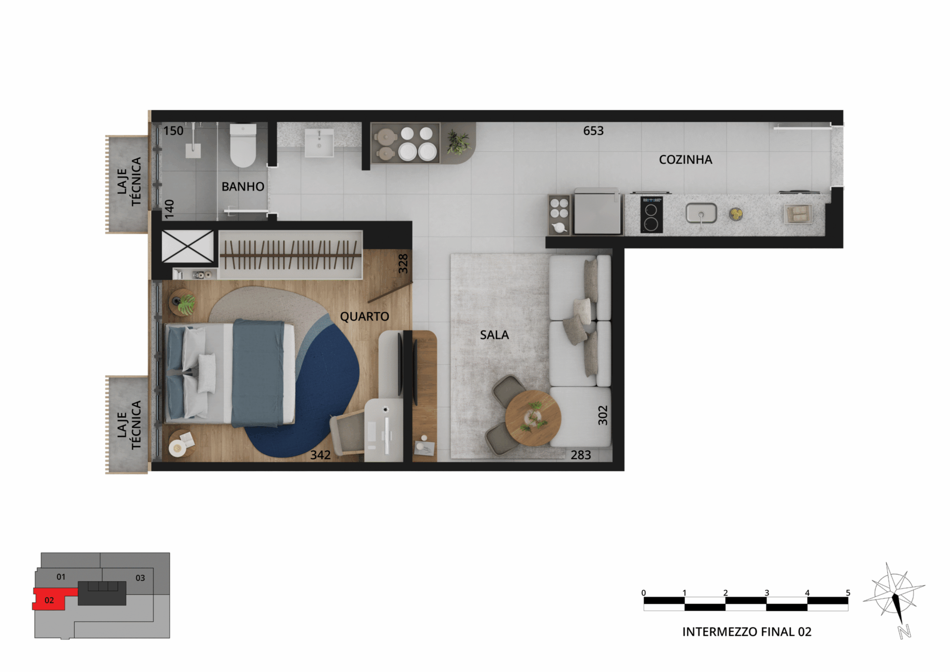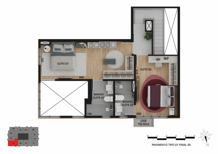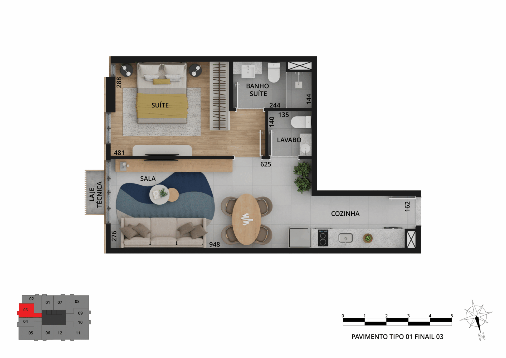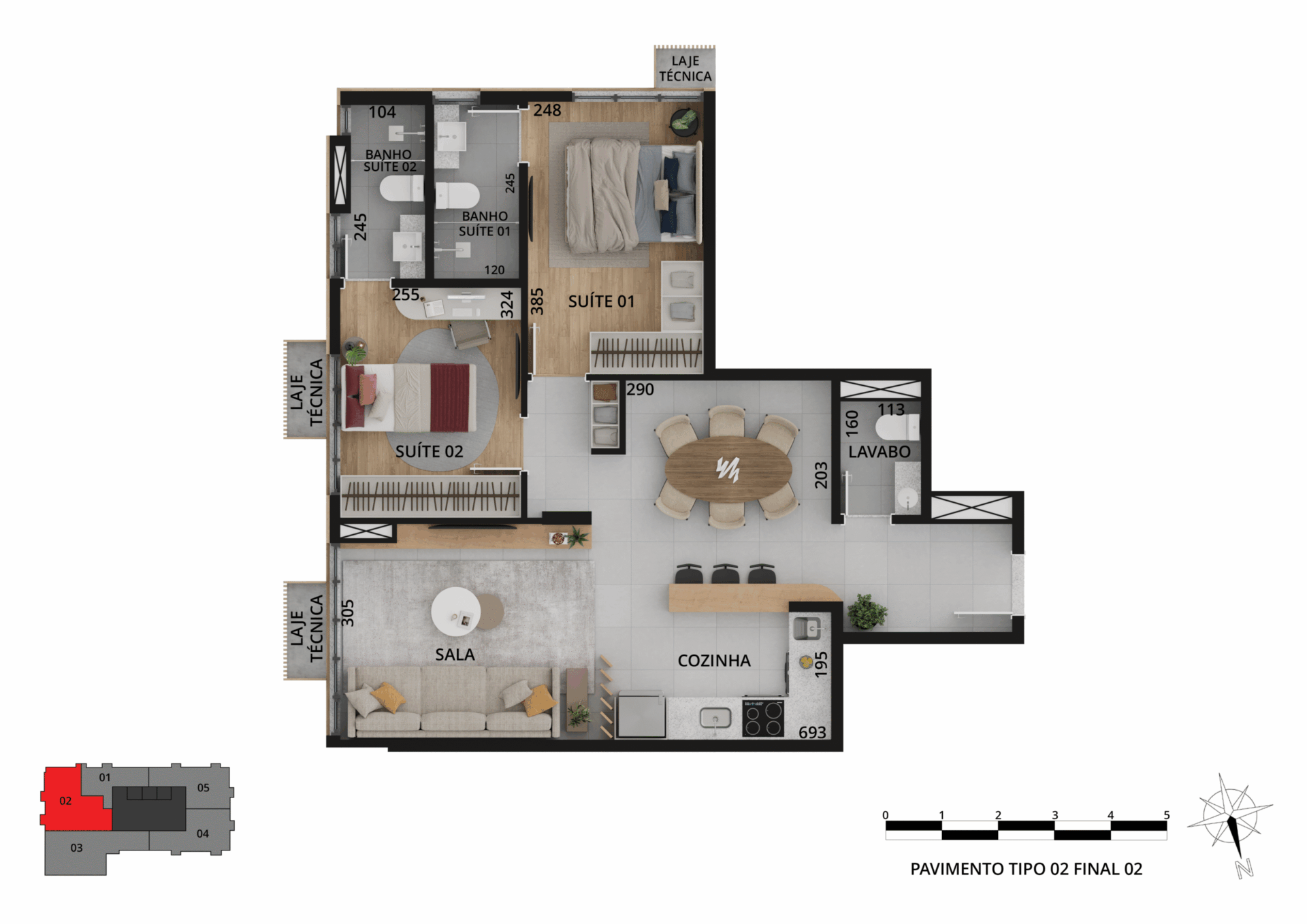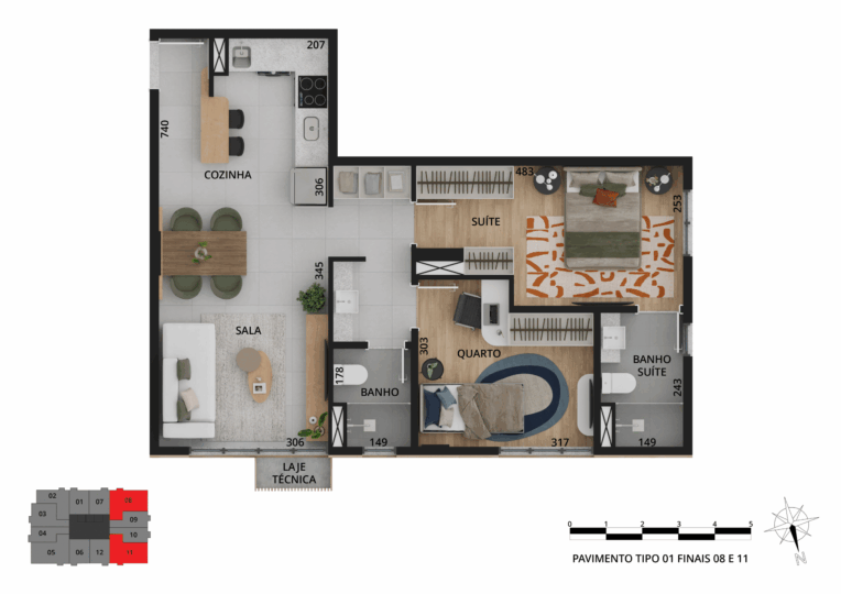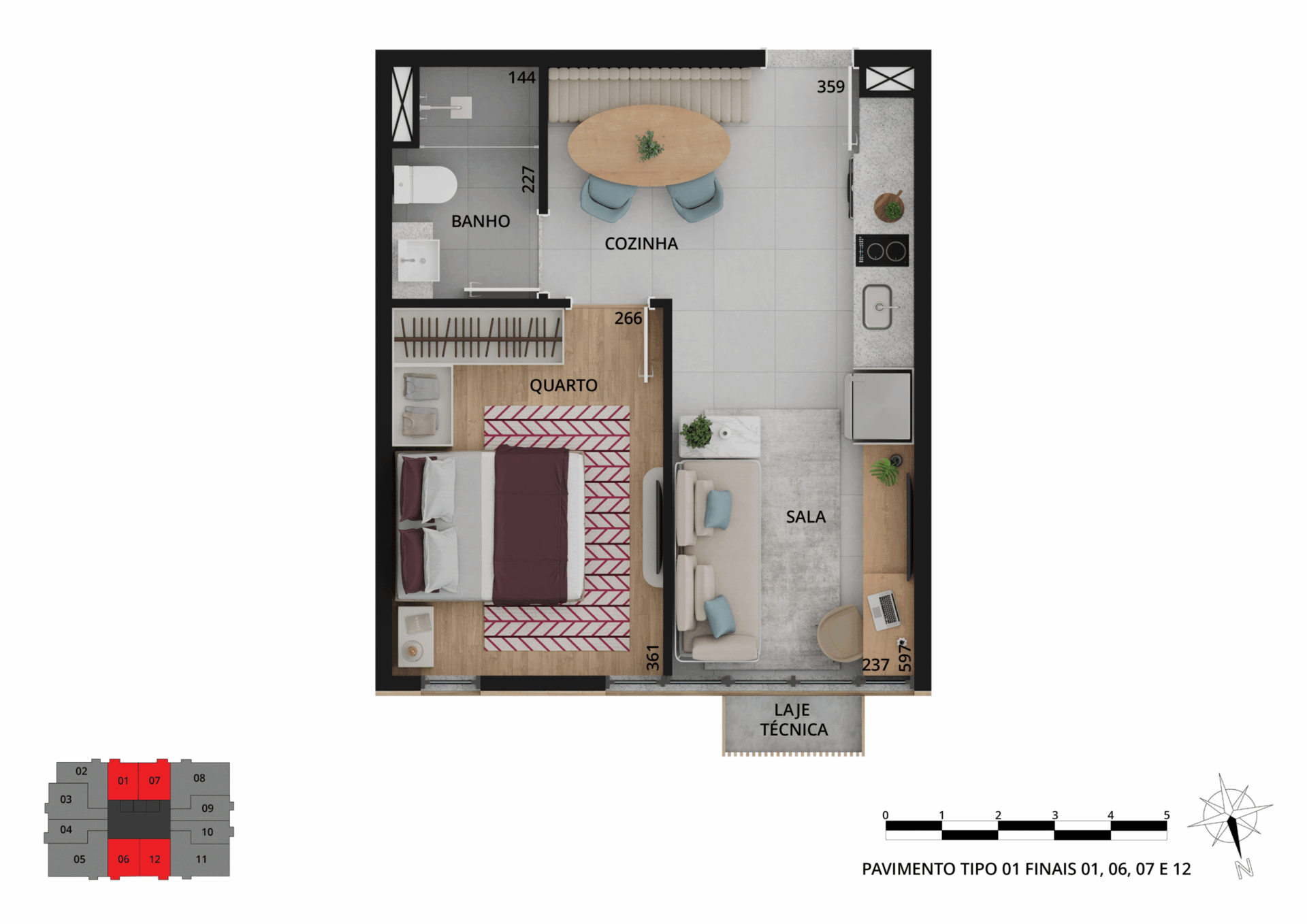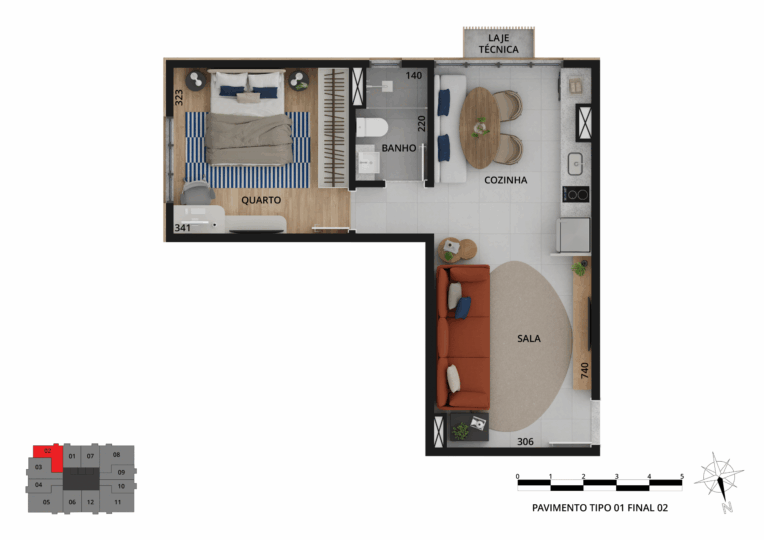Os espaços privados trazem sofisticação e tecnologias, além de plantas variadas, com studios e apartamentos de 1 a 3 quartos, metragem de 33 m² a 109 m² e vaga de garagem exclusiva.