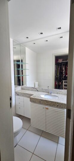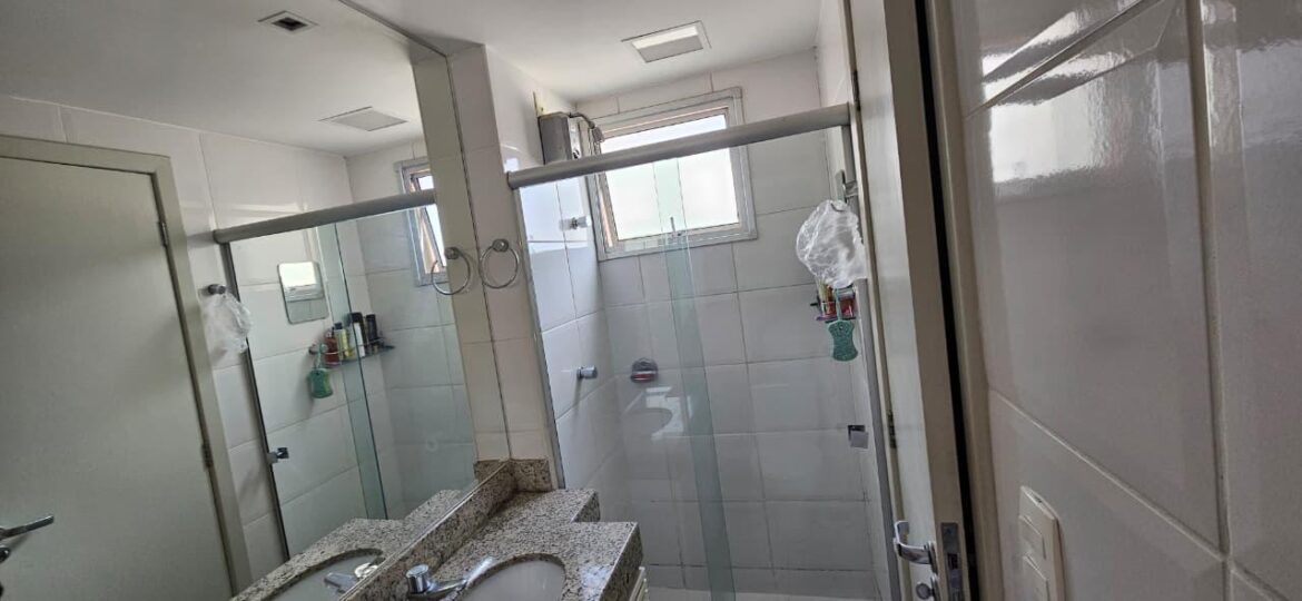 Banho social com box em vidro e espelho